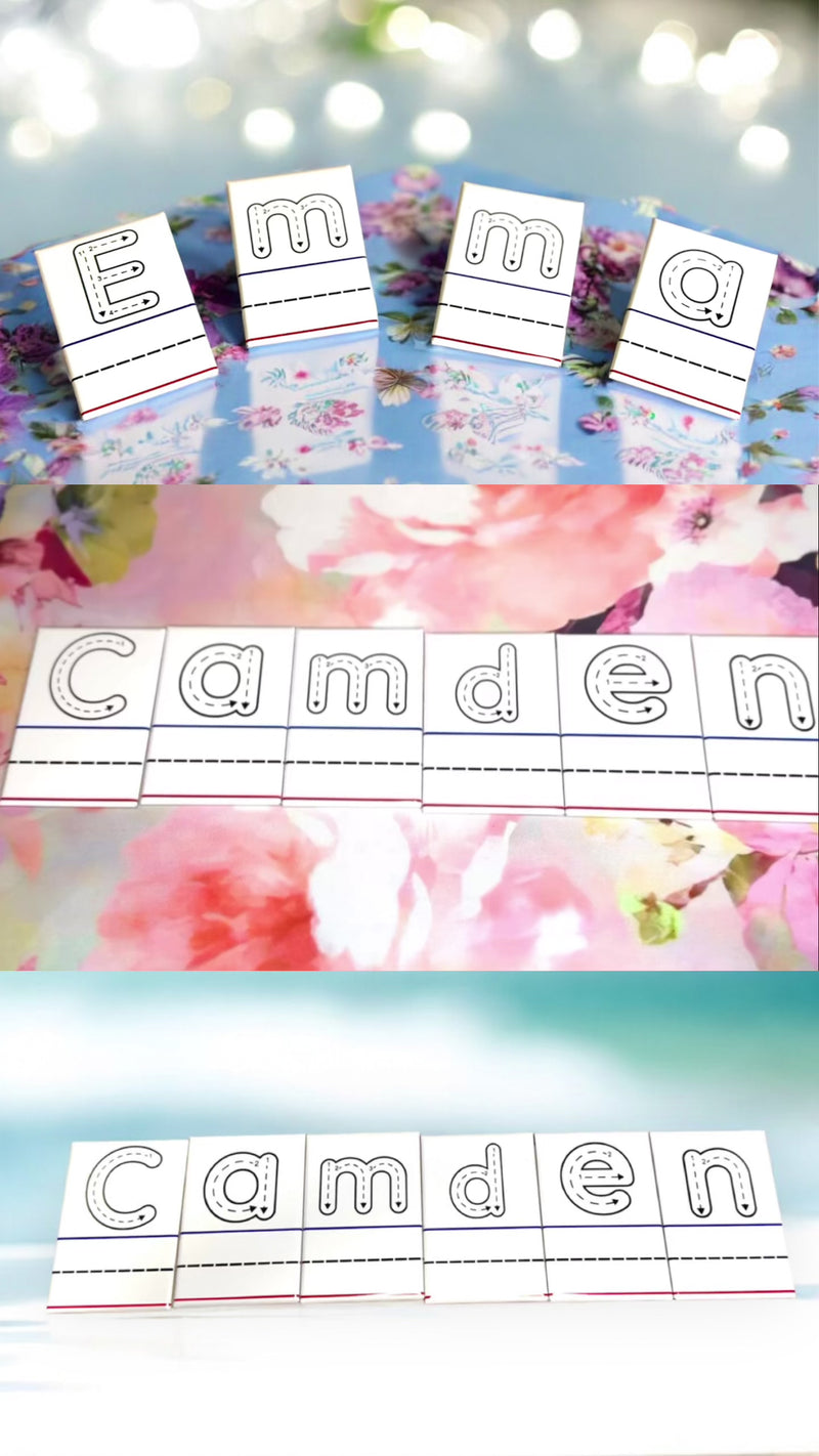 Custom name tracing magnets personalized with your child's name $1.85 per letter. Reusable 2x3 magnetic letters help kids practice writing their name. Perfect learning tool!